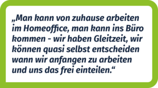 In einer dynamischen Arbeitswelt ist Flexibilität entscheidend. Bei uns stehen die Bedürfnisse und das Wohlbefinden unserer Mitarbeiter im Mittelpunkt, weshalb wir ein modernes Arbeitsumfeld schaffen, das Flexibilität und Work-Life-Balance fördert. Unsere Konzepte für flexibles Arbeiten und Homeoffice bieten dir die Freiheit, deine Arbeit an deine individuellen Lebensumstände anzupassen.